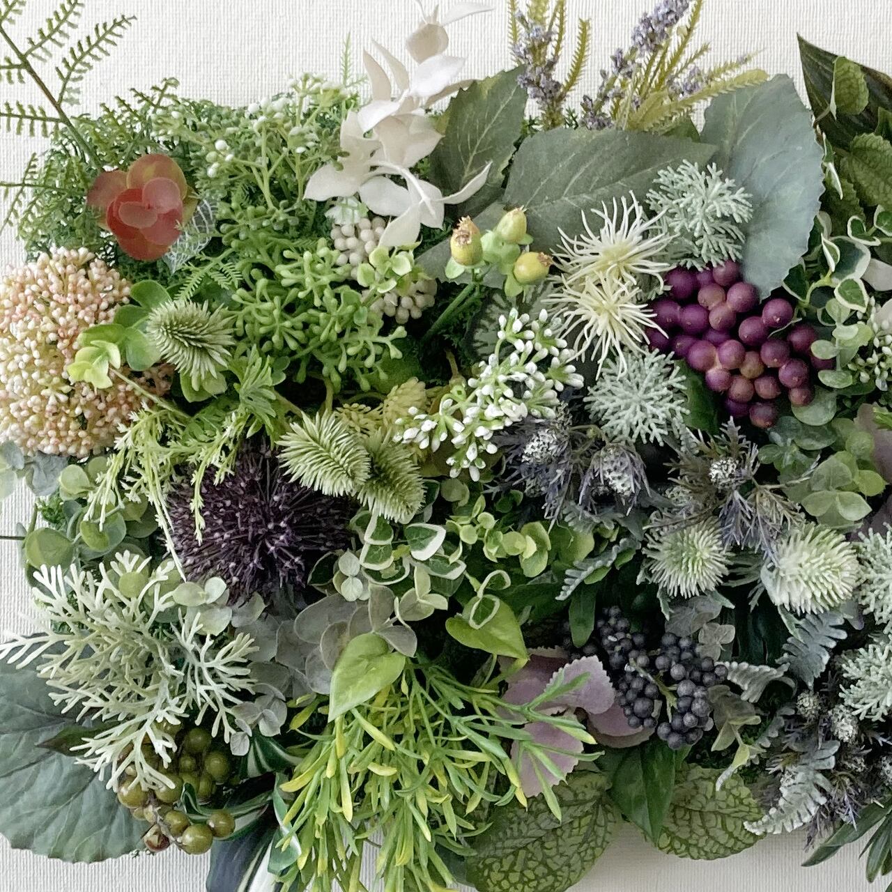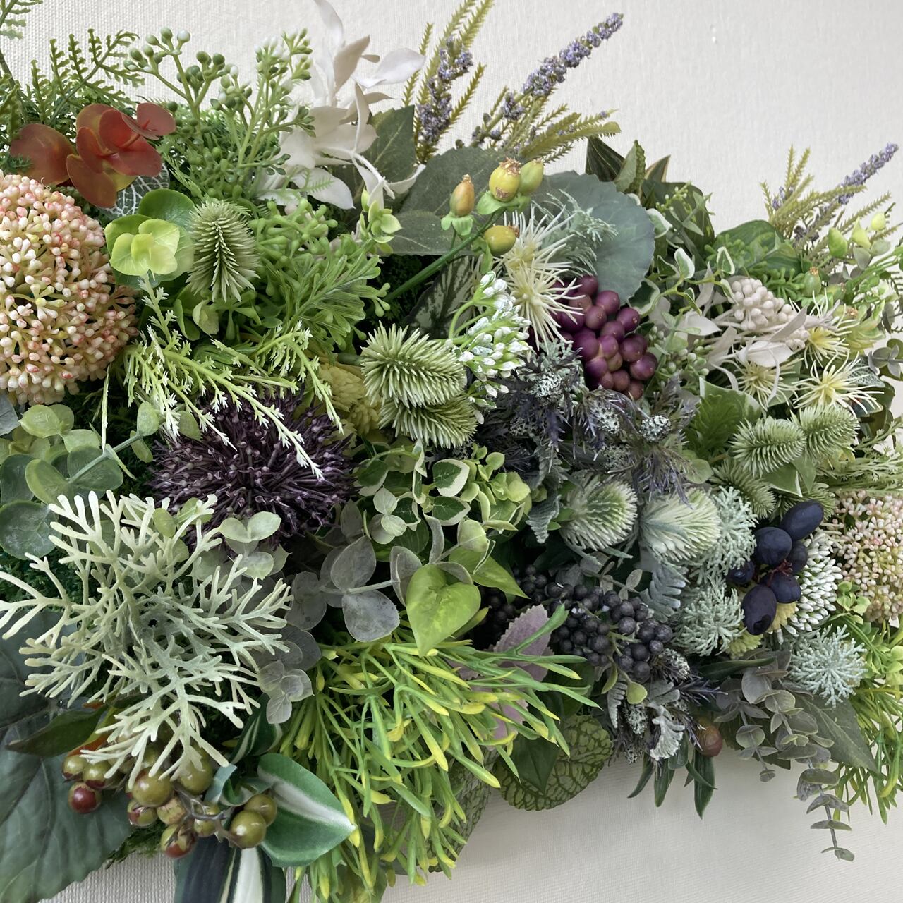 - 特徴:たくさんの葉や木の実などまるで植物に囲まれているような印象が漂う癒やしの空間を演出します。裏面がネットになっているので壁面などにもフックなどを使って簡単に設置できます。(重量に対応しフックが取付けられる壁に限ります)