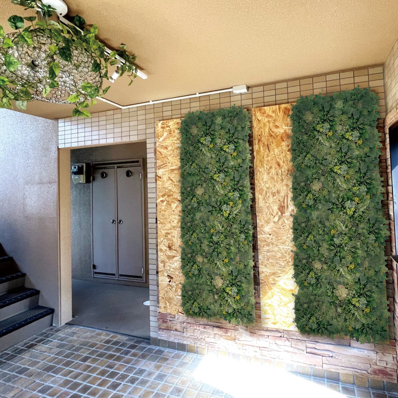 リフォルの「グリーンウォール」は上質なフェイクグリーンを立体的に配置したインテリア性の高い壁面装飾です。
