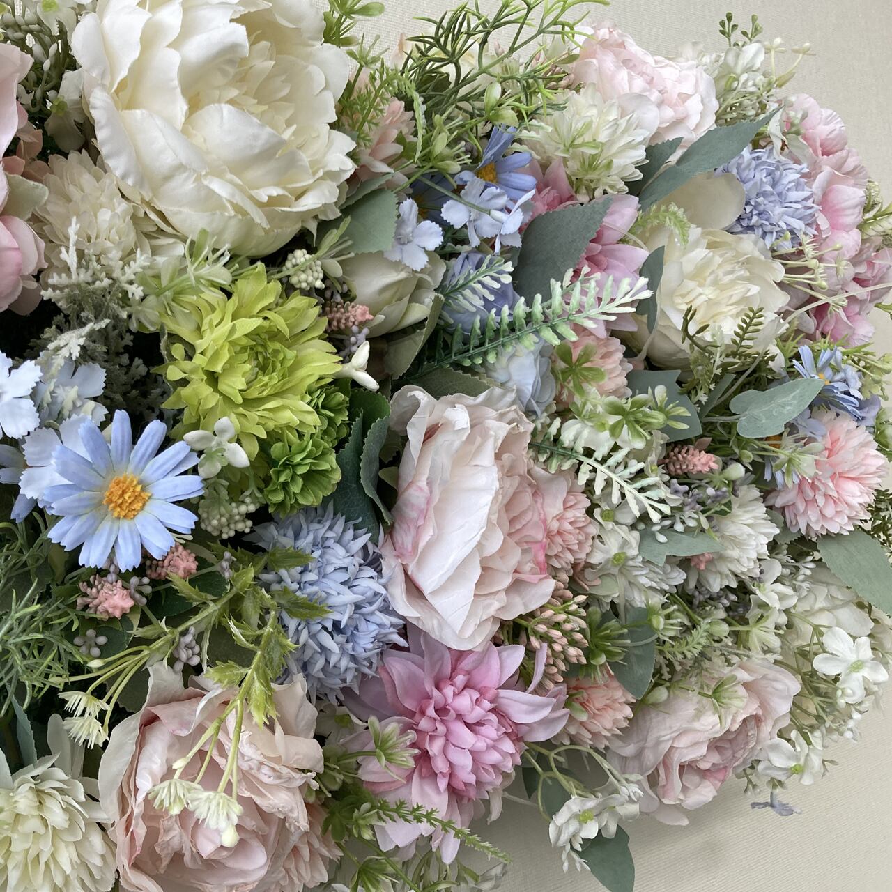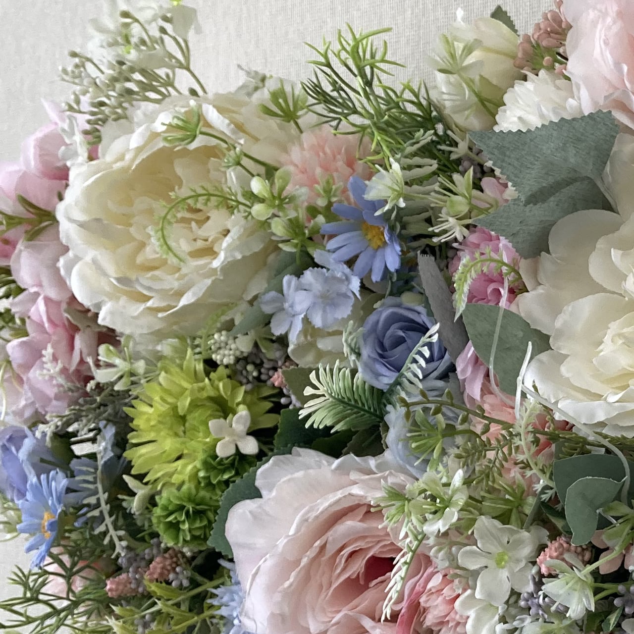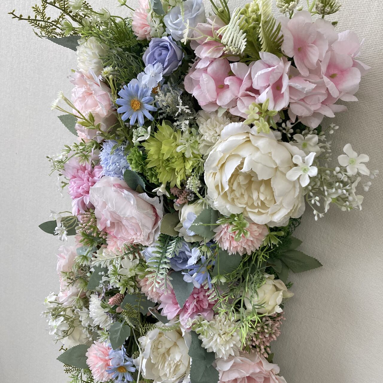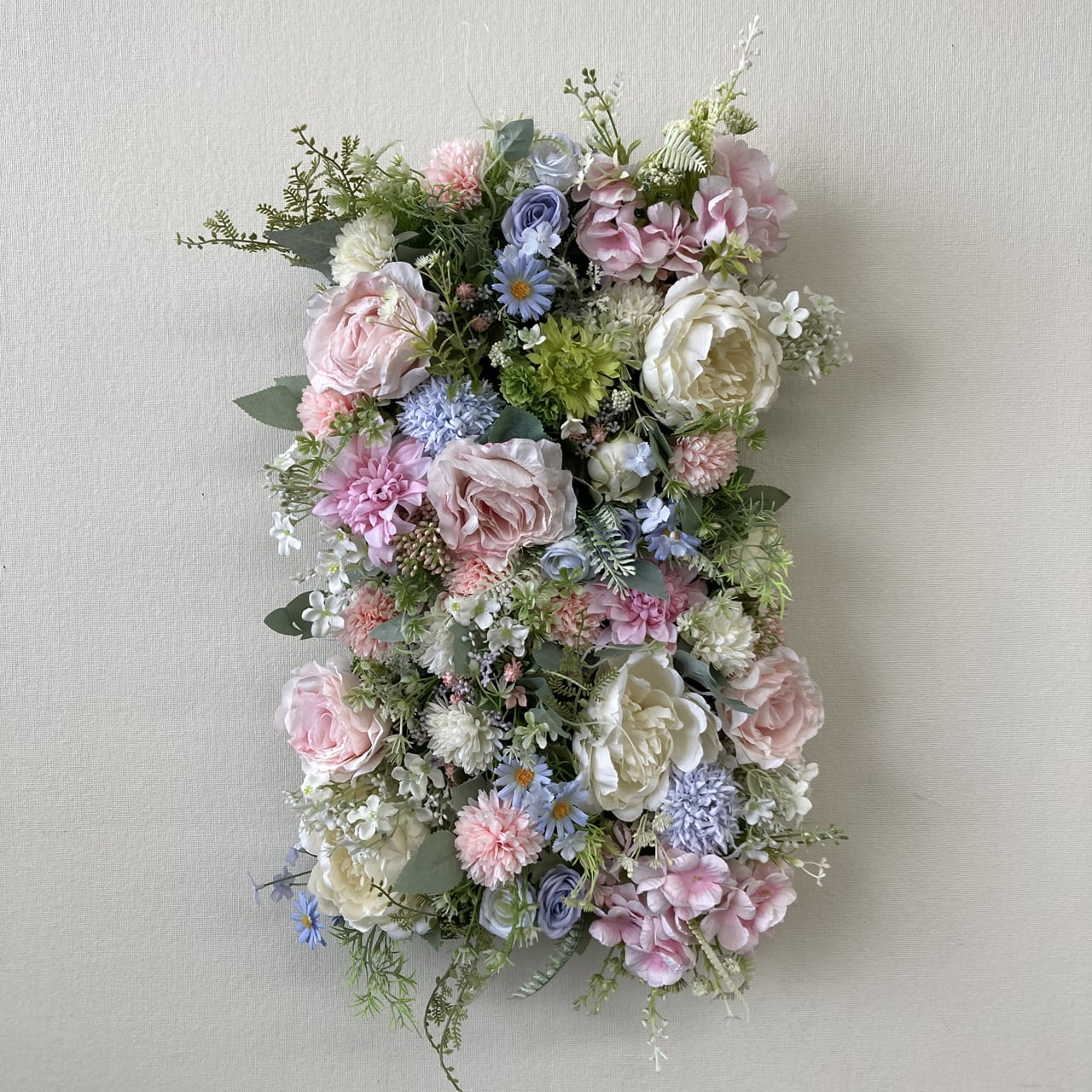 - 特徴:みずみずしく華やかな印象が漂う癒やしの空間を演出します。裏面がネットになっているので壁面などにもフックなどを使って簡単に設置できます。(重量に対応しフックが取付けられる壁に限ります)