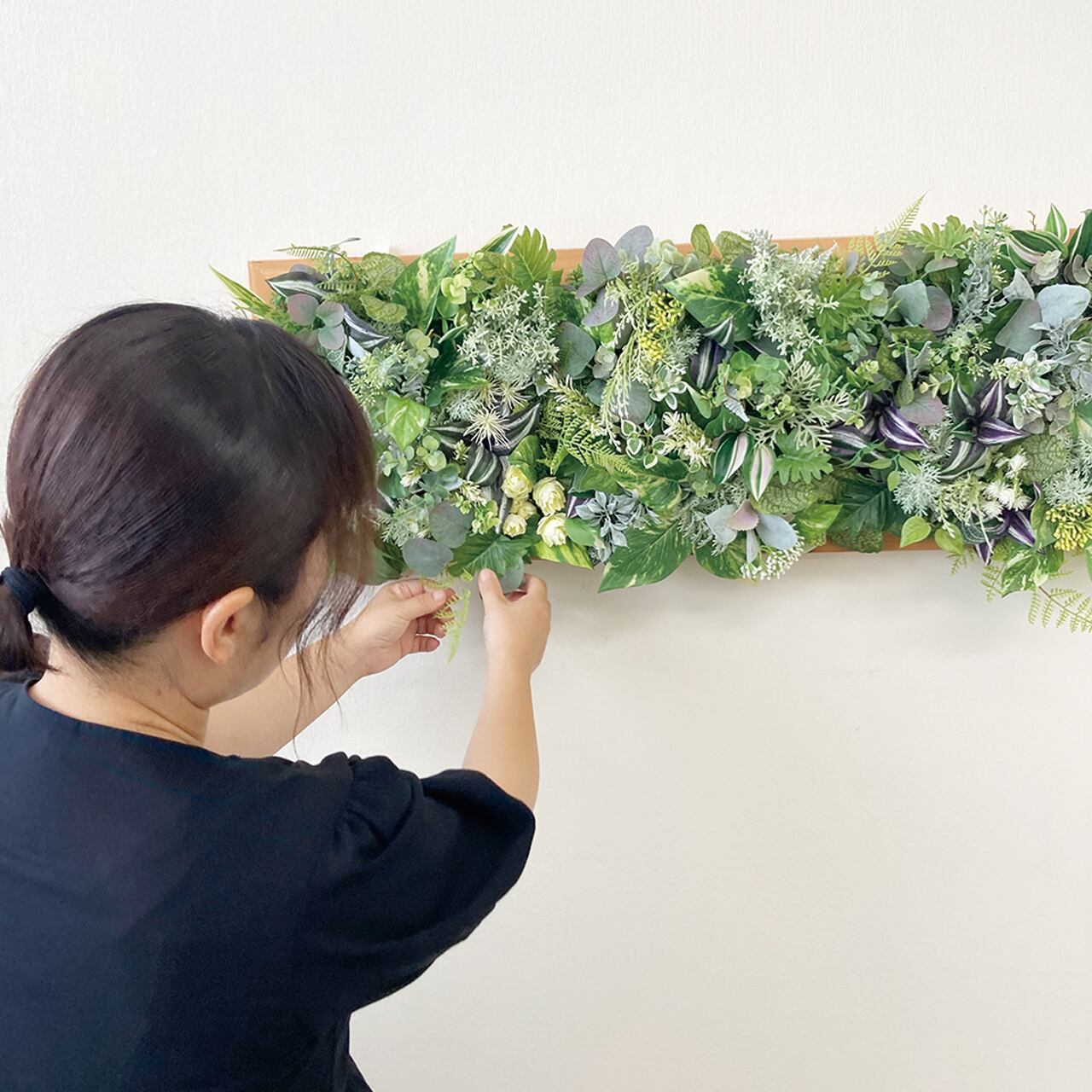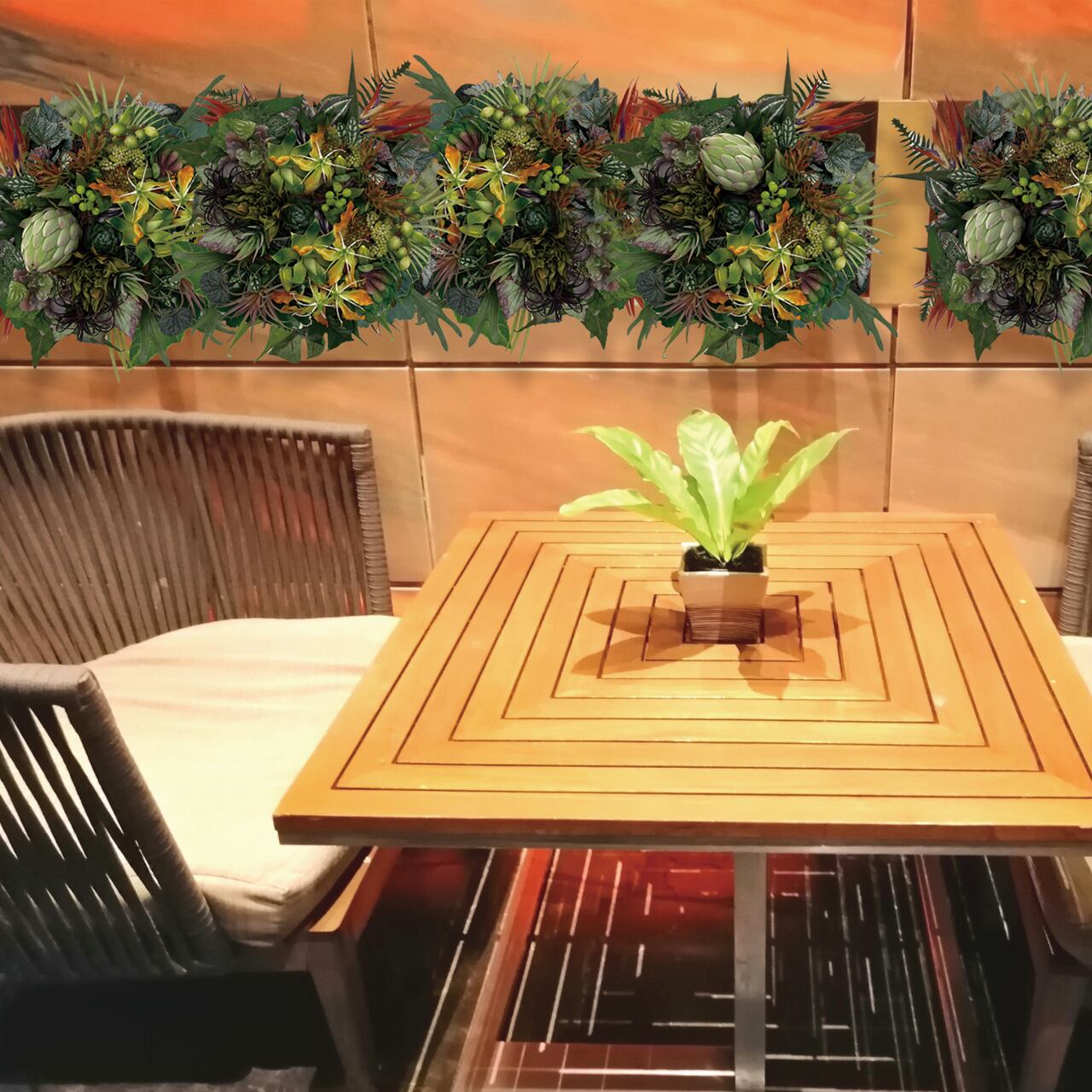 リフォルの「グリーンウォール」は上質なフェイクグリーンを立体的に配置したインテリア性の高い壁面装飾です。